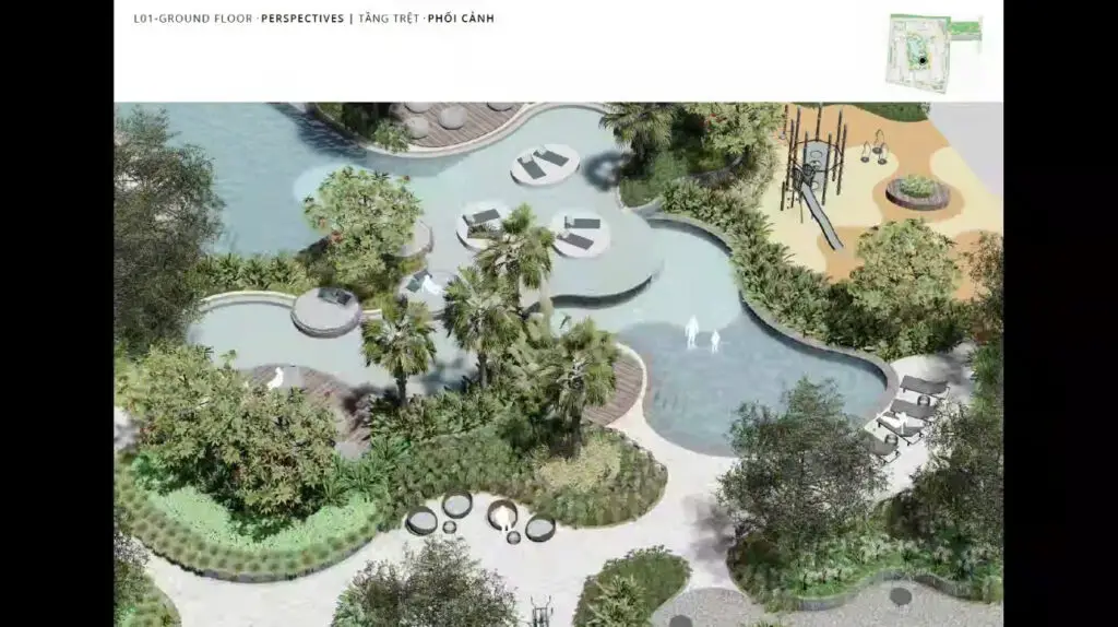Tất cả được bố trí hài hòa trong tổng thể dự án, giúp cư dân tận hưởng cuộc sống tiện nghi ngay trong khuôn viên nơi ở.